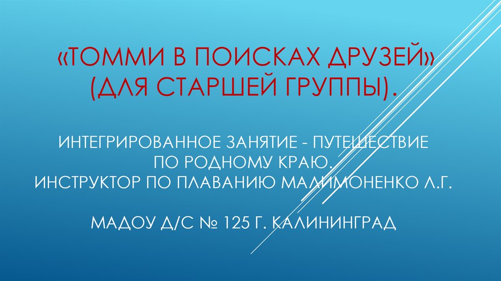 «Томми в поисках друзей» (для старшей группы). Интегрированное занятие - путешествие по родному краю