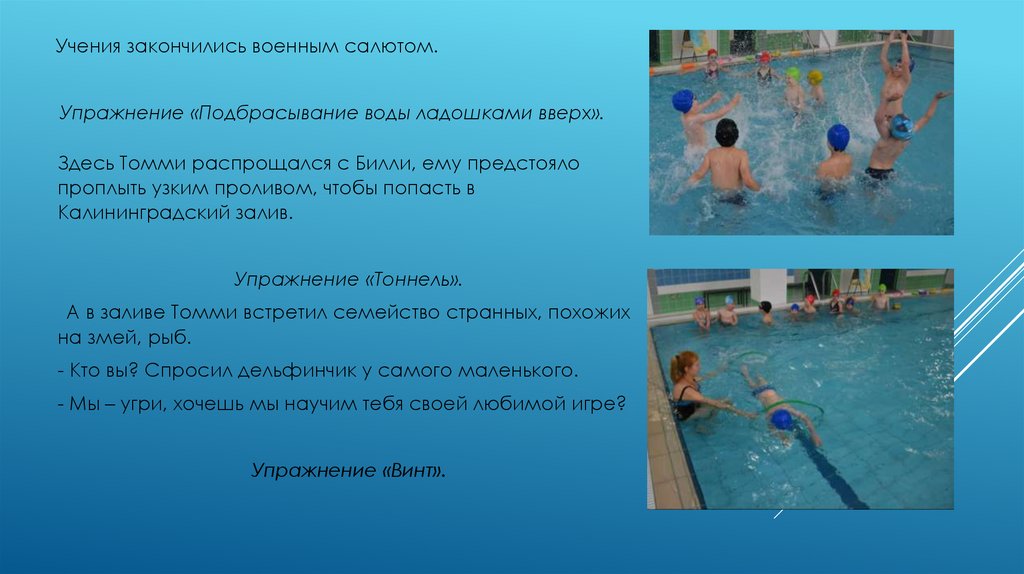 отправляются в бассейн).