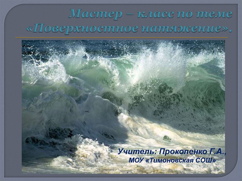 Учитель: Прокопенко Г.А.,МОУ «Тимоновская СОШ»