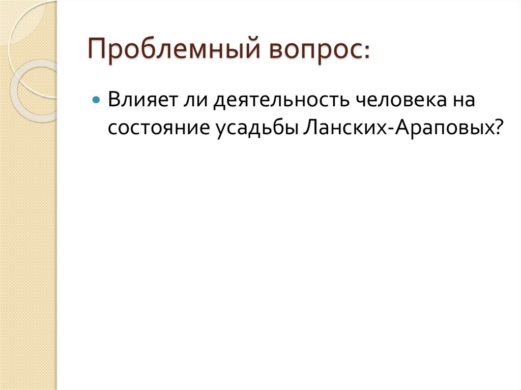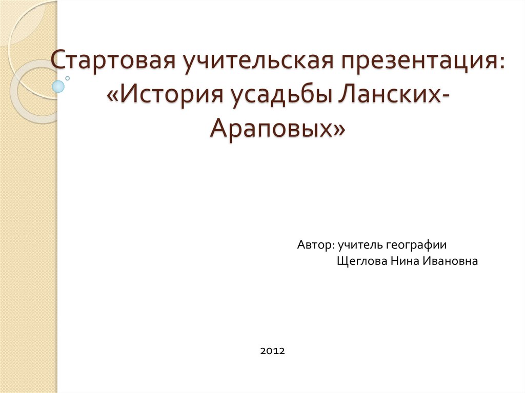 Стартовая учительская презентация:«История усадьбы ЛанскихАраповых»