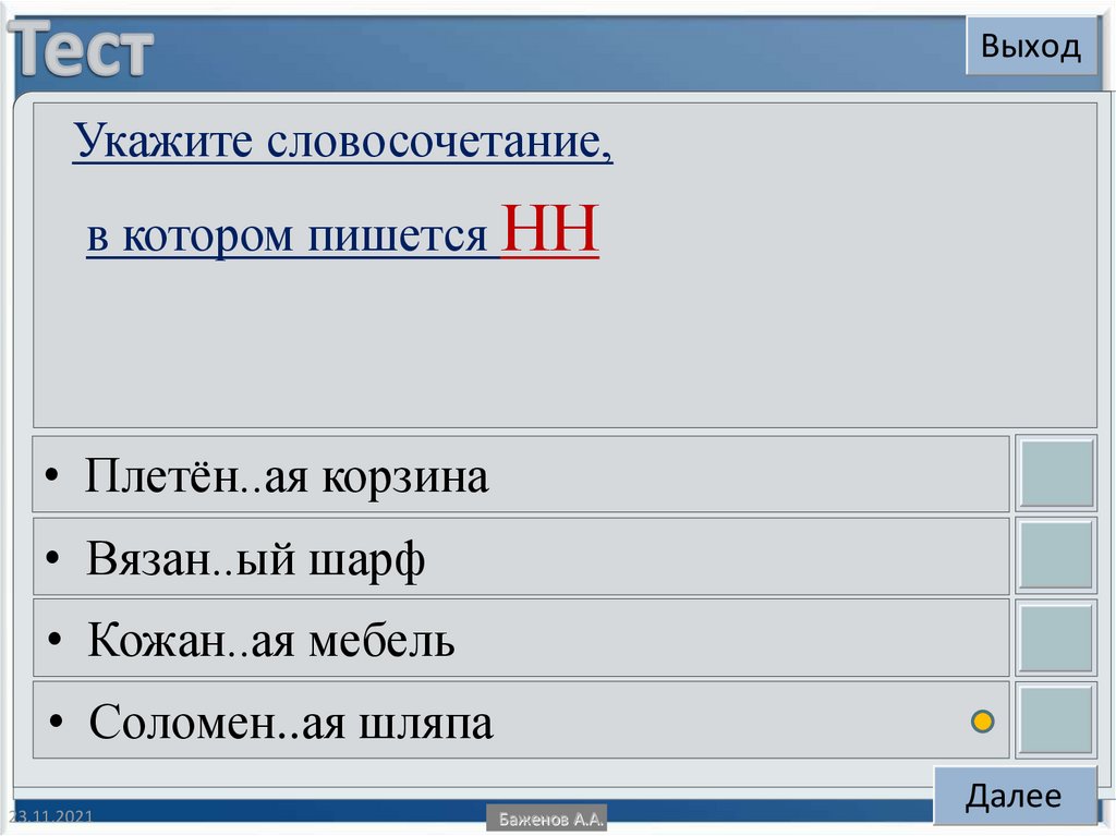 ВыходУкажите словосочетание,