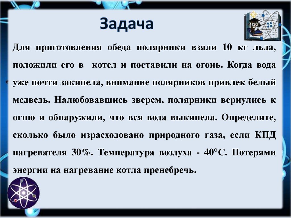 Для приготовления обеда полярники взяли 10 кг льда,положили его в котел и поставили на огонь. Когда вода
