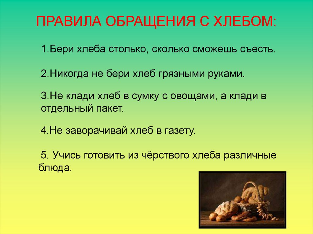 ПРАВИЛА ОБРАЩЕНИЯ С ХЛЕБОМ:1.Бери хлеба столько, сколько сможешь съесть.