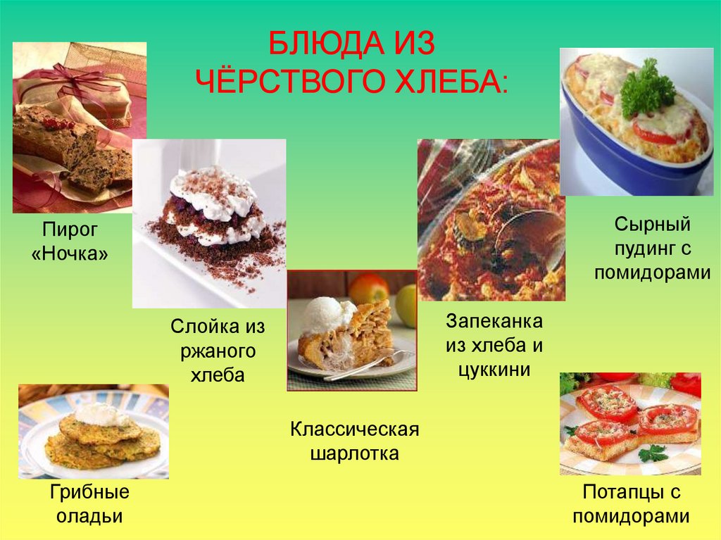 БЛЮДА ИЗЧЁРСТВОГО ХЛЕБА: