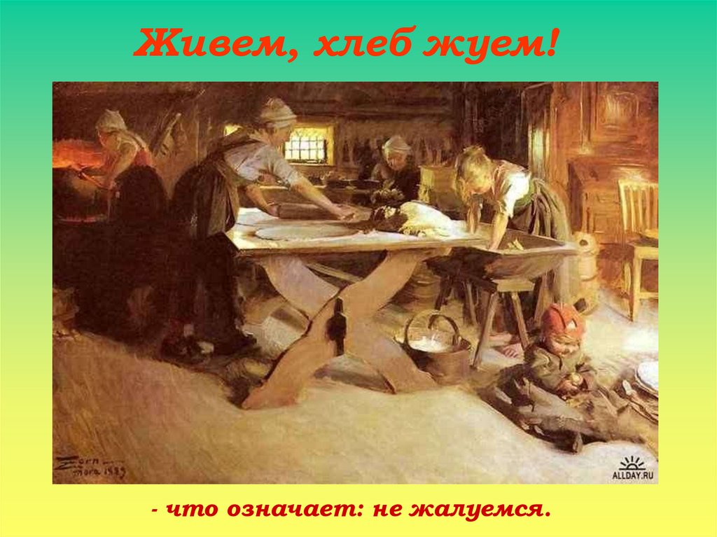 Живем, хлеб жуем!- что означает: не жалуемся.