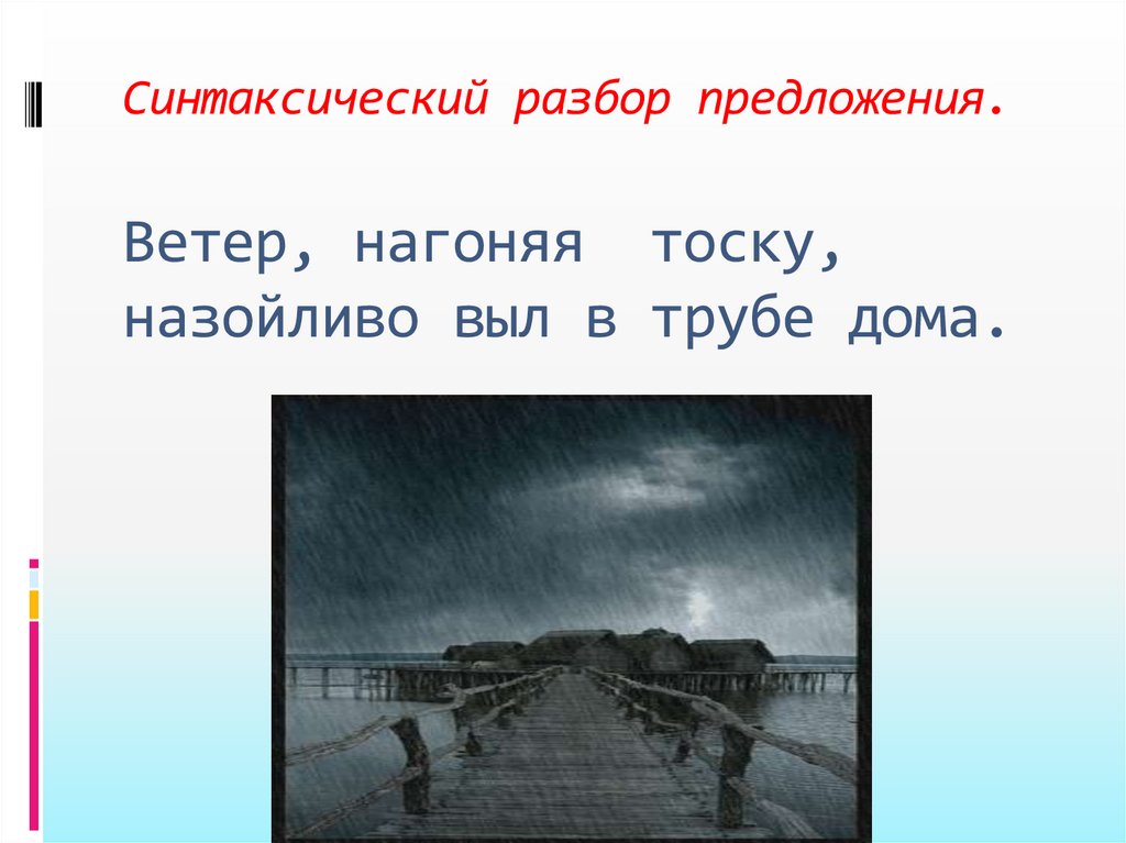 Синтаксический разбор предложения.Ветер, нагоняя тоску,