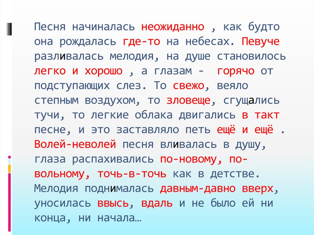 Слова для справок: Неожиданно, Певуче, легко и хорошо,