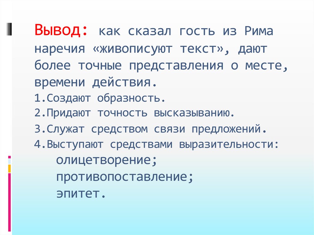 Вывод: как сказал гость из Риманаречия «живописуют текст», дают