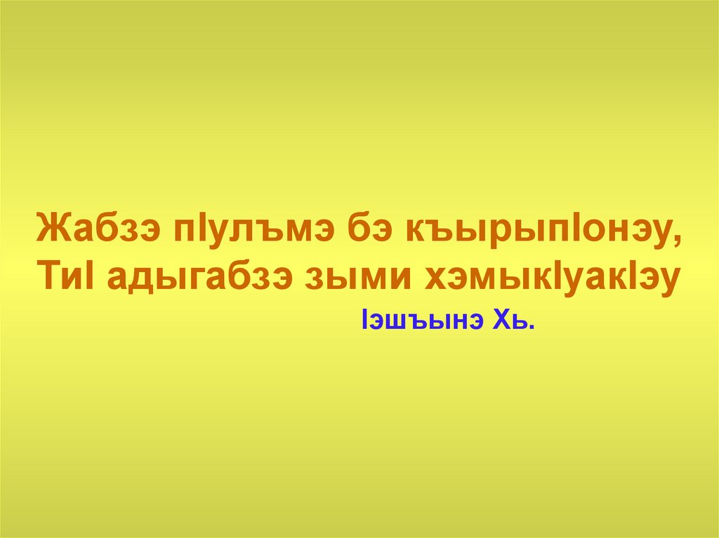1. Жабзэ пIулъмэ бэ къырыпIонэу, ТиI адыгабзэ зыми хэмыкIуакIэу Iэшъынэ Хь.