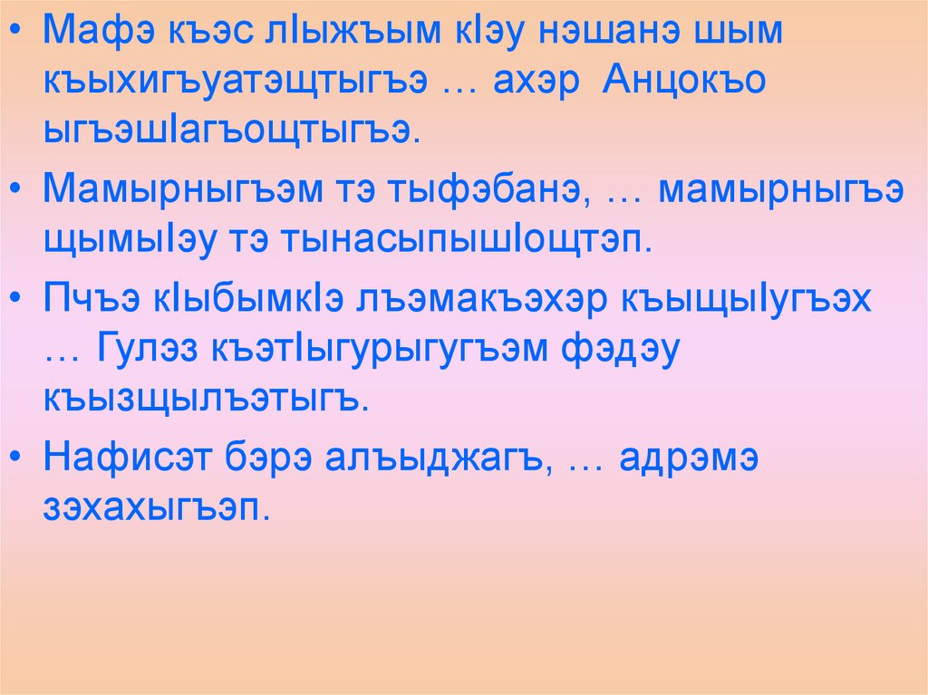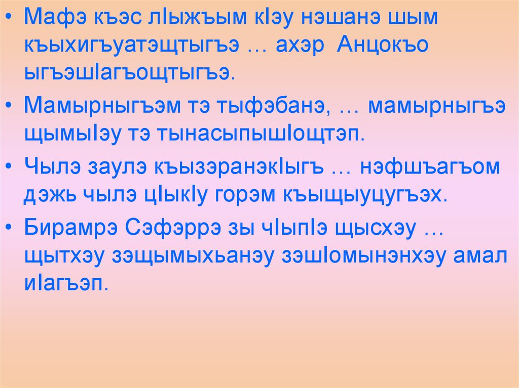 • Чылэ заулэ къызэранэкIыгъ … нэфшъагъом