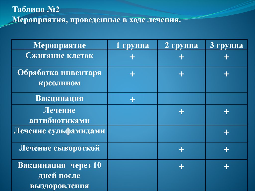 Таблица №2Мероприятия, проведенные в ходе лечения.