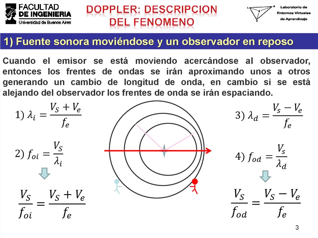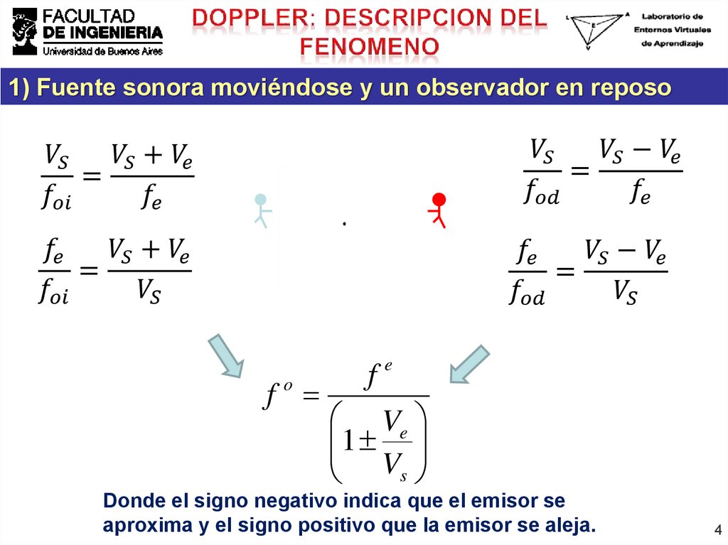 1) Fuente sonora moviéndose y un observador en reposoCuando el emisor se está moviendo acercándose al observador,