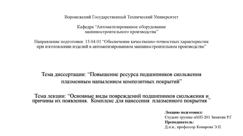 Воронежский Государственный Технический УниверситетКафедра “Автоматизированное оборудование