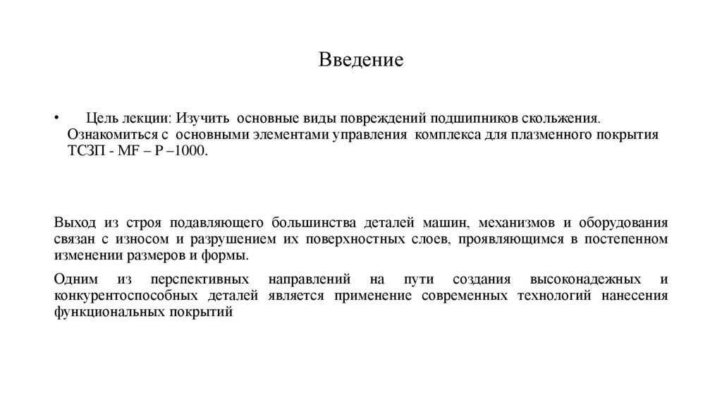 ВведениеЦель лекции: Изучить основные виды повреждений подшипников скольжения.