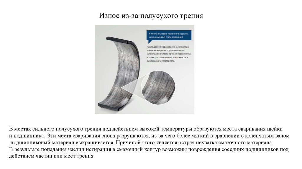 Износ из-за полусухого тренияВ местах сильного полусухого трения под действием высокой температуры образуются места сваривания шейки