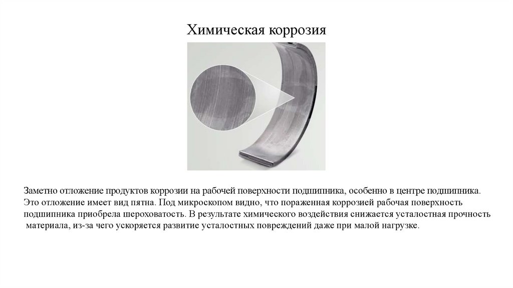 подшипника приобрела шероховатость. В результате химического воздействия снижается усталостная прочность