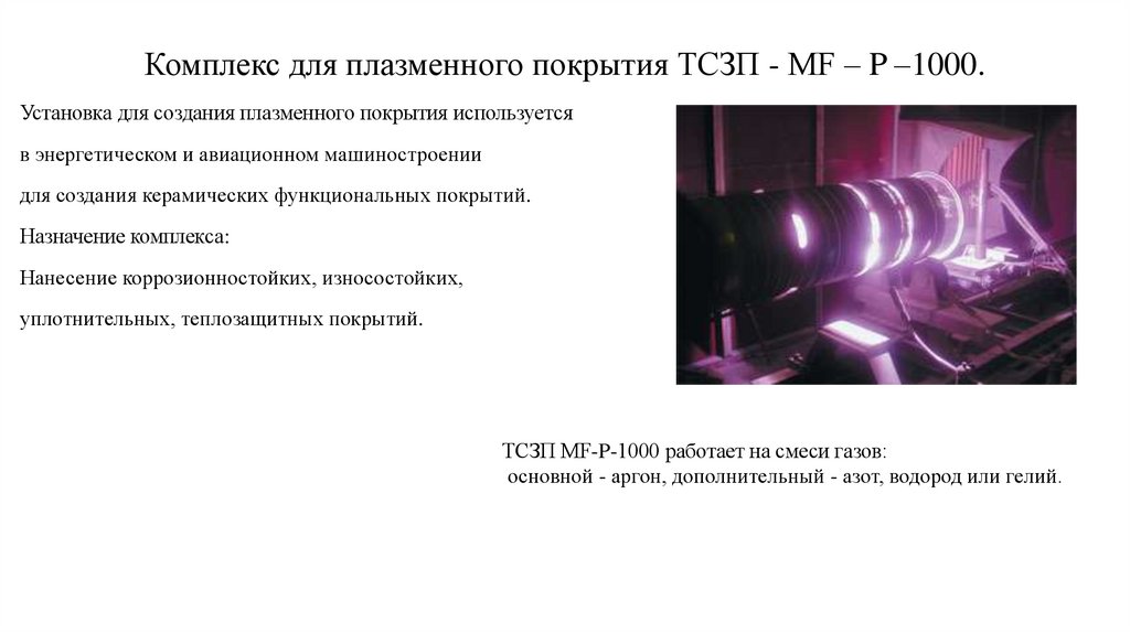 Комплекс для плазменного покрытия ТСЗП - МF – P –1000.Установка для создания плазменного покрытия используется