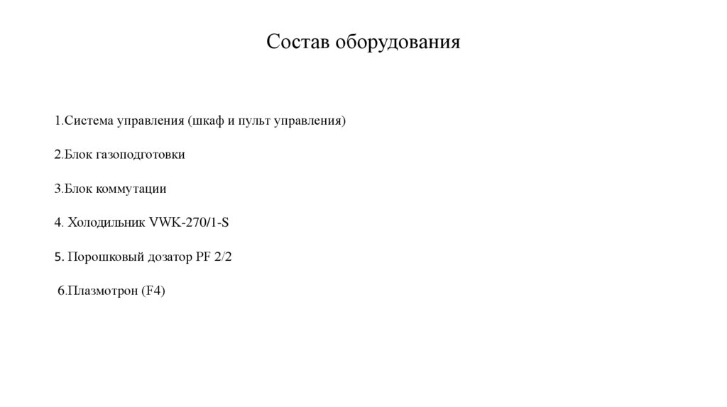 Состав оборудования1.Система управления (шкаф и пульт управления)