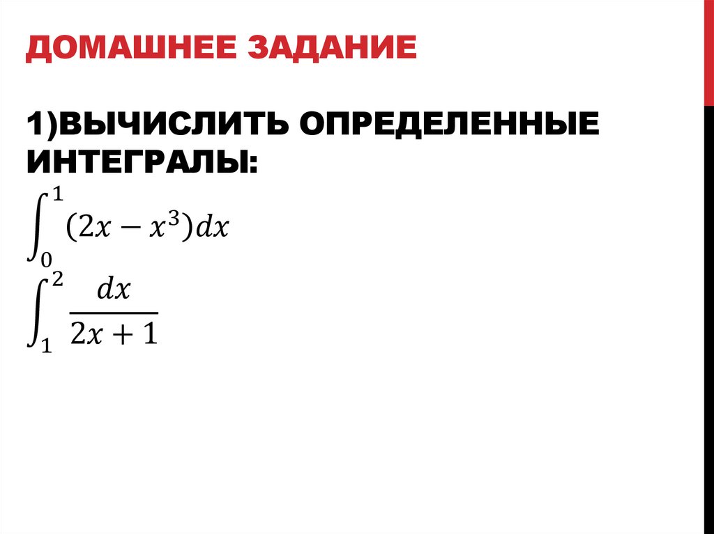 ДОМАШНЕЕ ЗАДАНИЕ1)ВЫЧИСЛИТЬ ОПРЕДЕЛЕННЫЕ