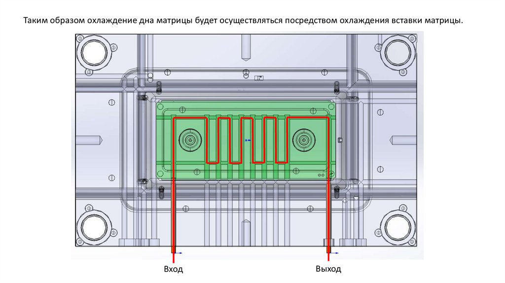 Таким образом охлаждение дна матрицы будет осуществляться посредством охлаждения вставки матрицы.Вход