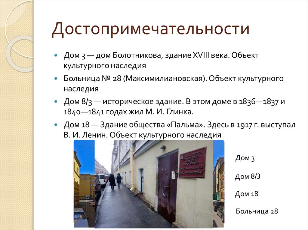 ДостопримечательностиДом 3 — дом Болотникова, здание XVIII века. Объект