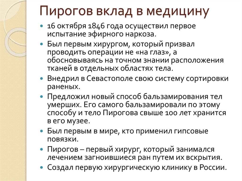 Пирогов вклад в медицину16 октября 1846 года осуществил первое