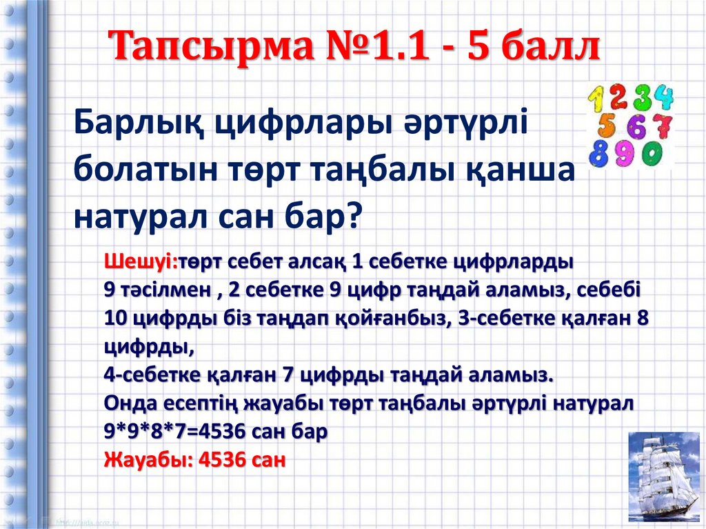 Онда есептің жауабы төрт таңбалы әртүрлі натурал