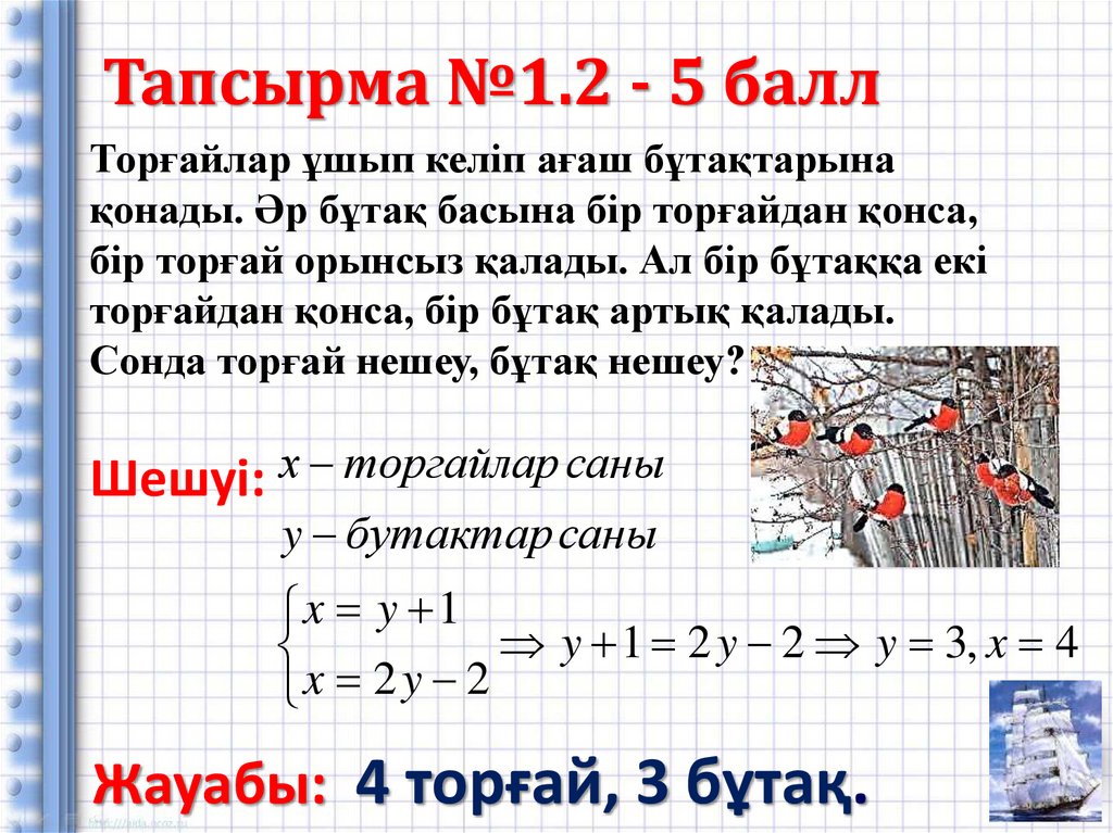 Тапсырма №1.2 - 5 баллТорғайлар ұшып келіп ағаш бұтақтарына