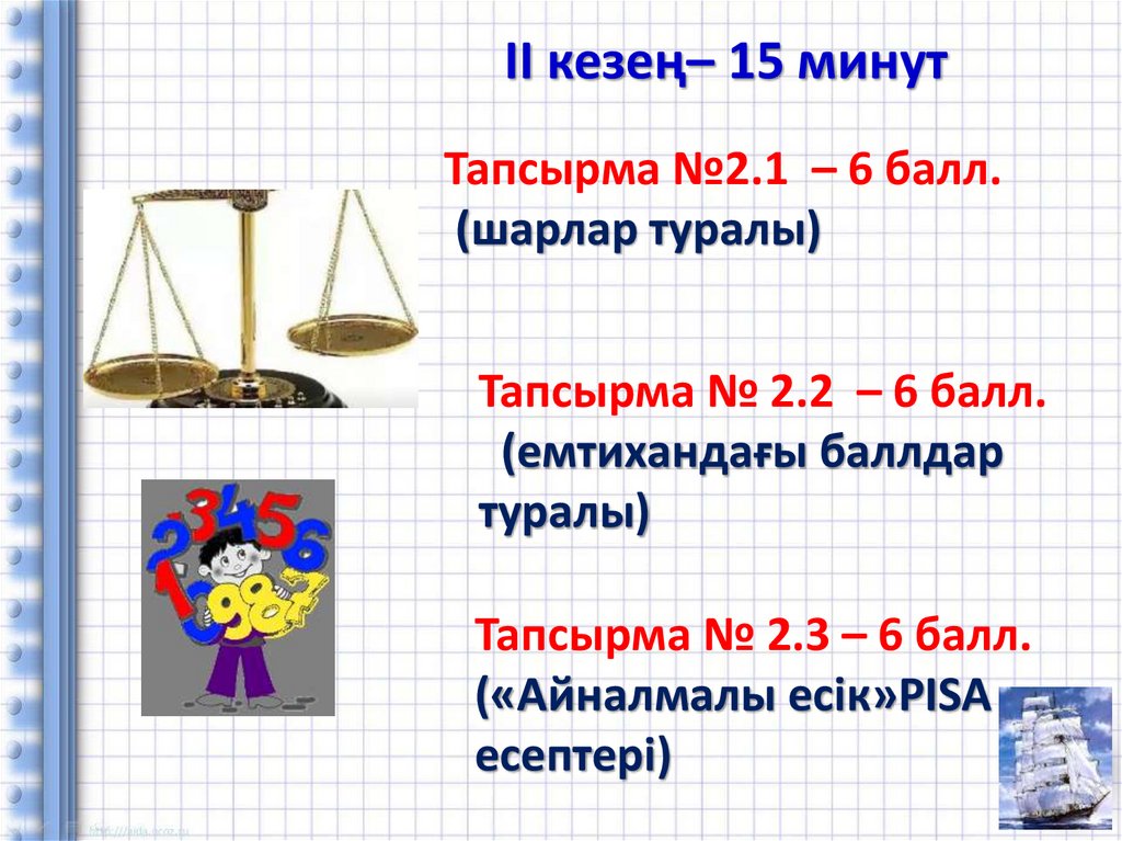 4. Әр кезеңге уақыт белгіленеді және әр тапсырманың баллы