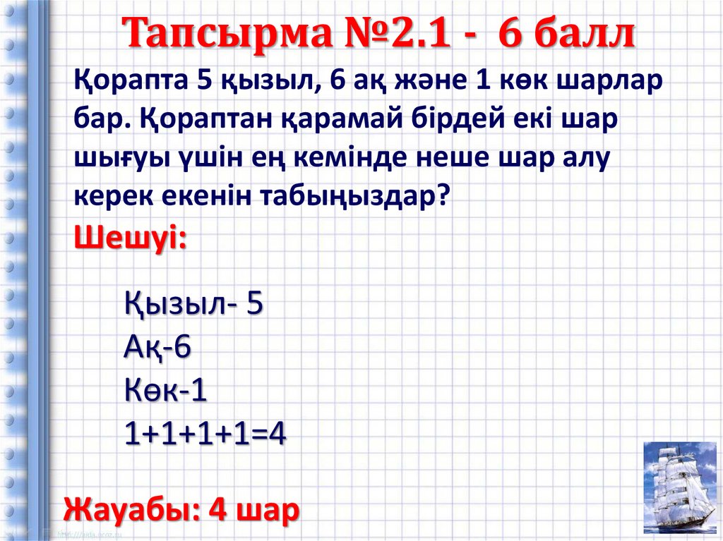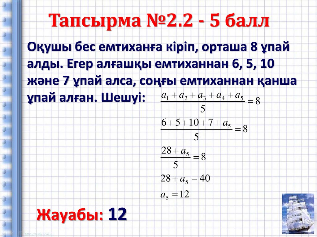 Тапсырма №2.2 - 5 баллОқушы бес емтиханға кіріп, орташа 8 ұпай