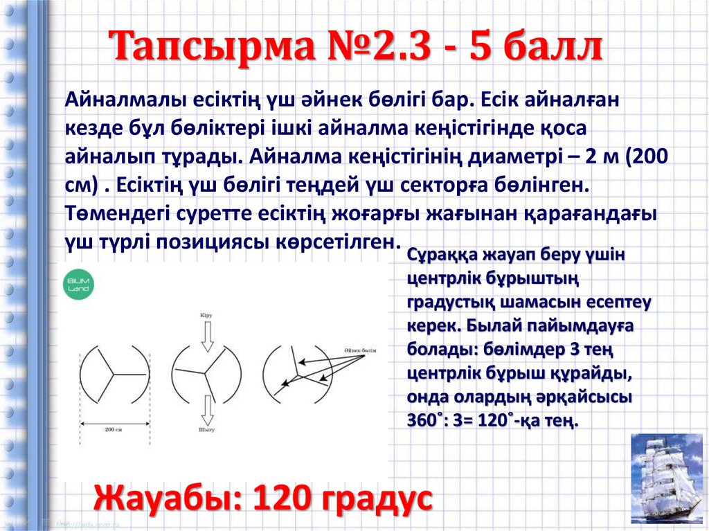 Тапсырма №2.3 - 5 баллАйналмалы есіктің үш әйнек бөлігі бар. Есік айналған