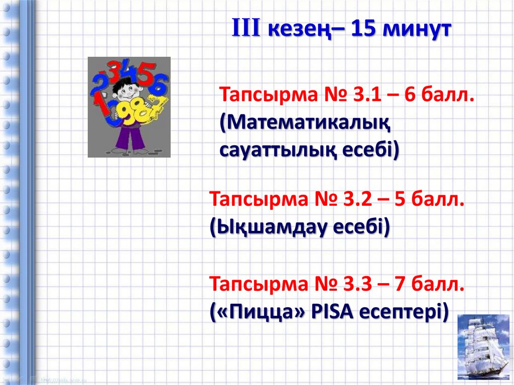 III кезең– 15 минутТапсырма № 3.1 – 6 балл.