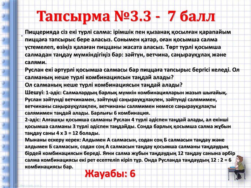 Тапсырма №3.3 - 7 балл. Пиццерияда сіз екі түрлі салма: ірімшік пен қызанақ қосылған қарапайым