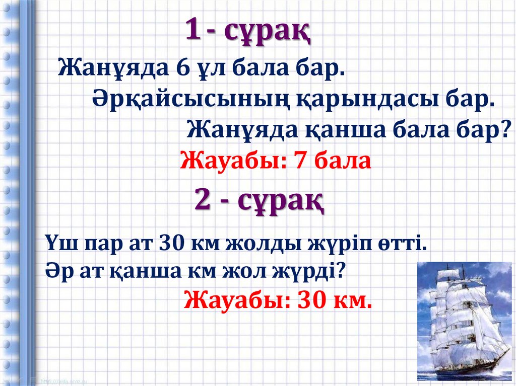 1 - сұрақЖанұяда 6 ұл бала бар.