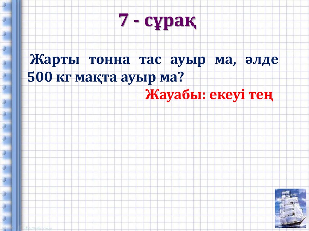 7 - сұрақЖарты тонна тас ауыр ма, әлде