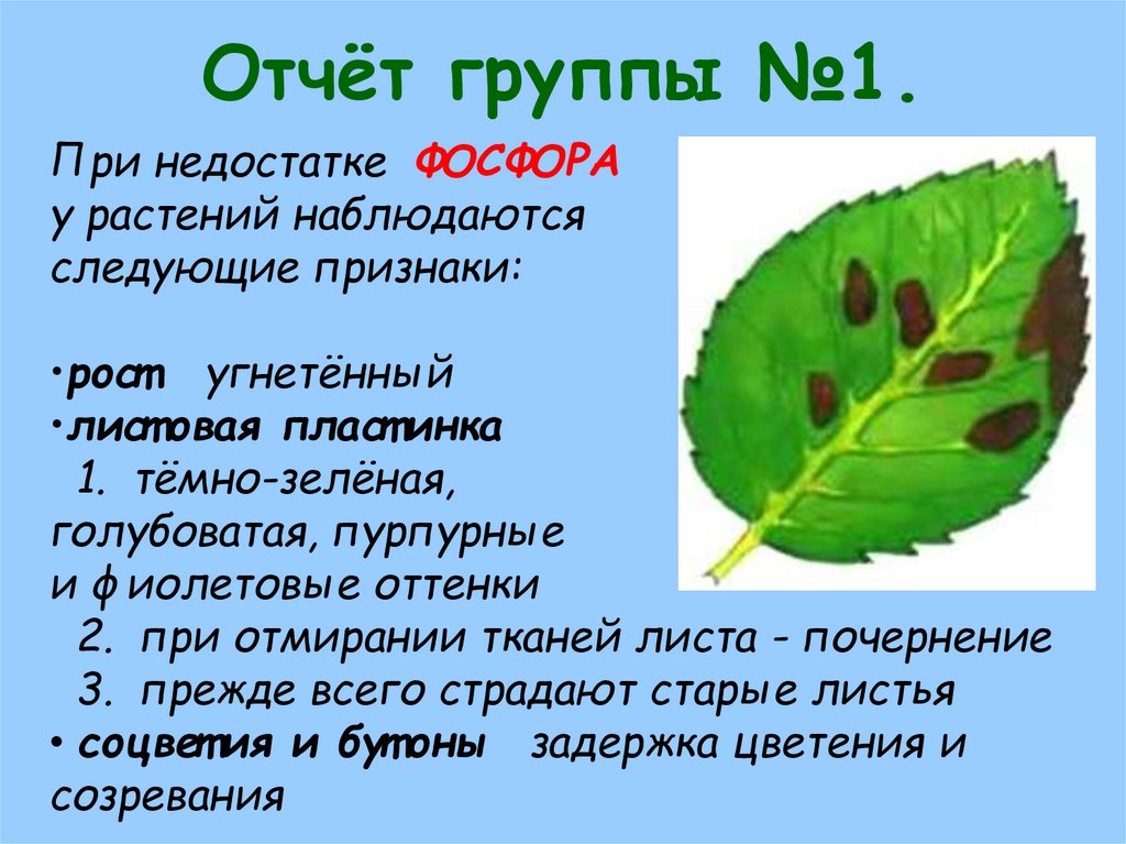 Отчёт группы №1.При недостатке ФОСФОРА