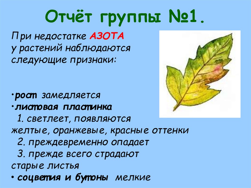 Отчёт группы №1.При недостатке АЗОТА