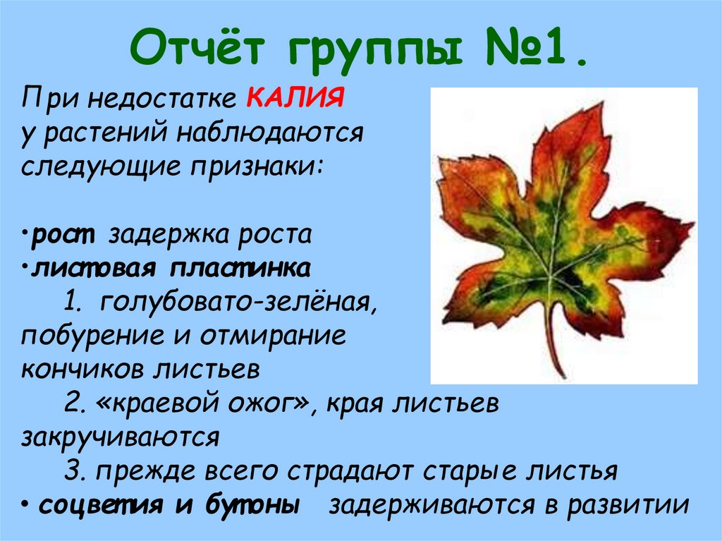 Отчёт группы №1.При недостатке КАЛИЯ