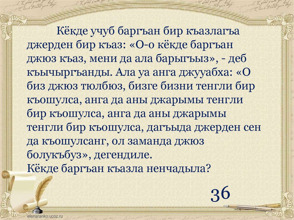 джюз къаз, мени да ала барыгъыз», - деб