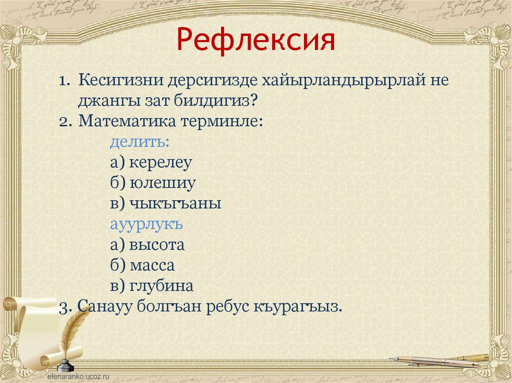 Рефлексия1. Кесигизни дерсигизде хайырландырырлай не