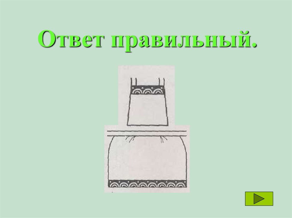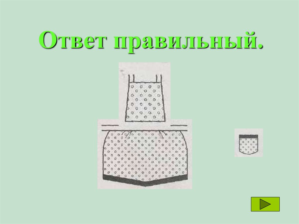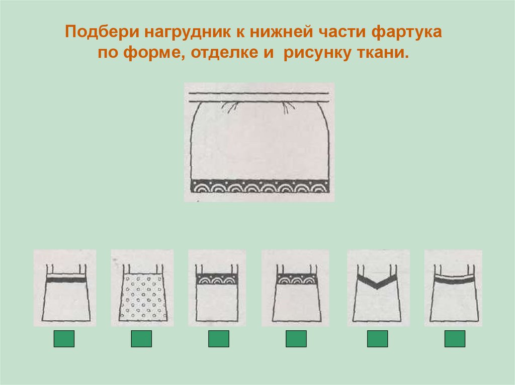 Подбери нагрудник к нижней части фартукапо форме, отделке и рисунку ткани.