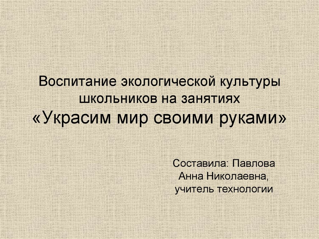1. Воспитание экологической культуры школьников на занятиях «Украсим мир своими руками»