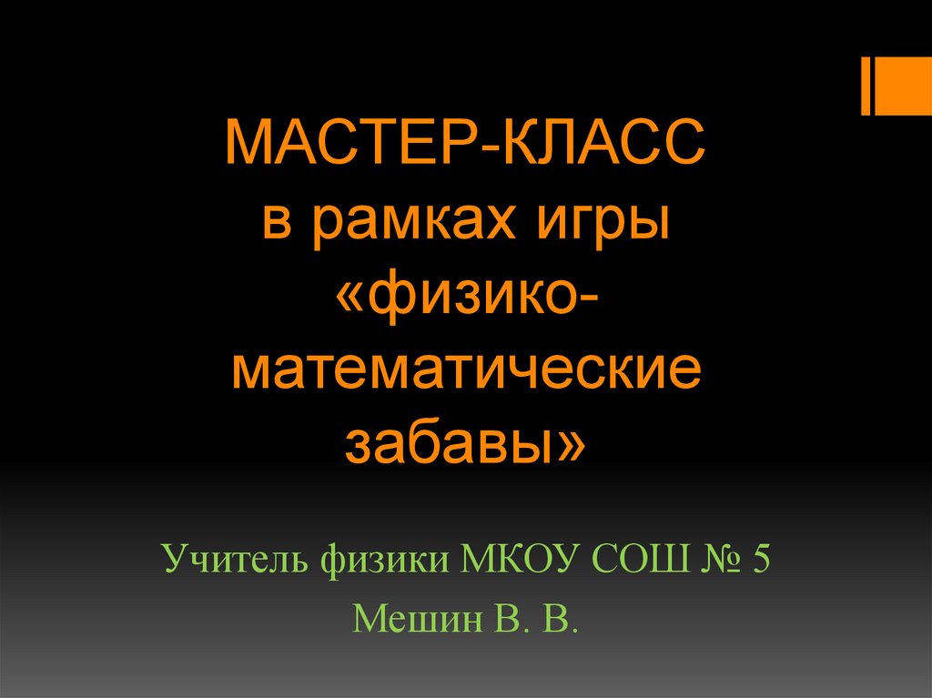 Мастер-класс в рамках игры «физико-математические забавы»