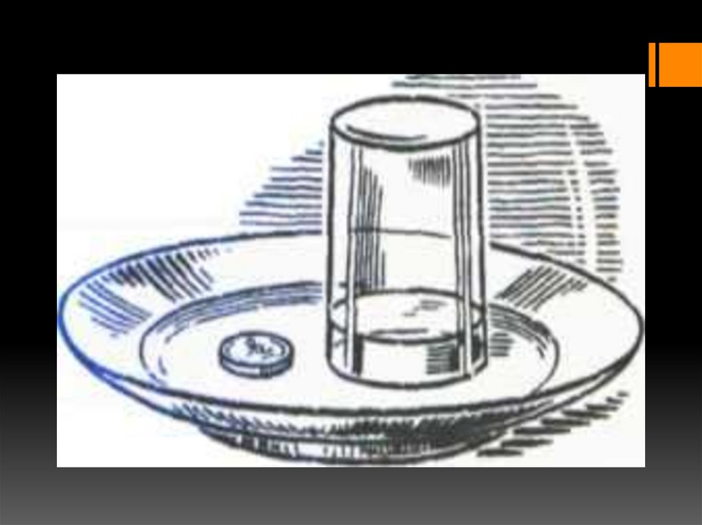 • Перевернуть стакан, накрыв им жидкость.