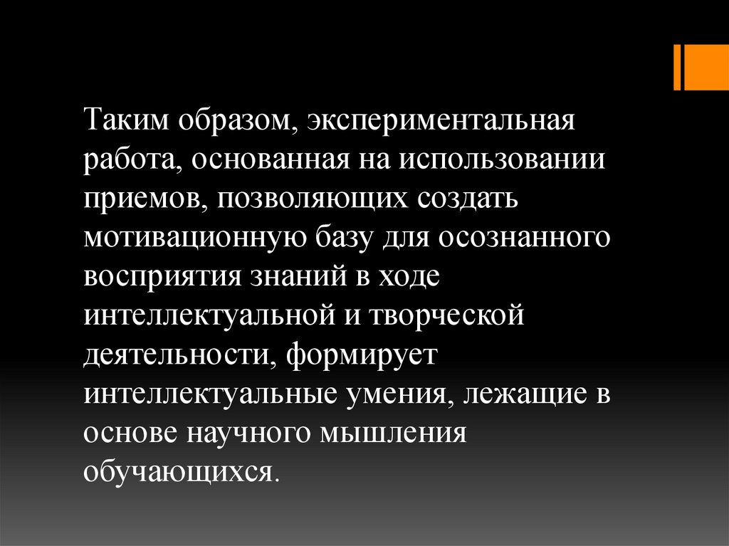 Таким образом, экспериментальнаяработа, основанная на использовании