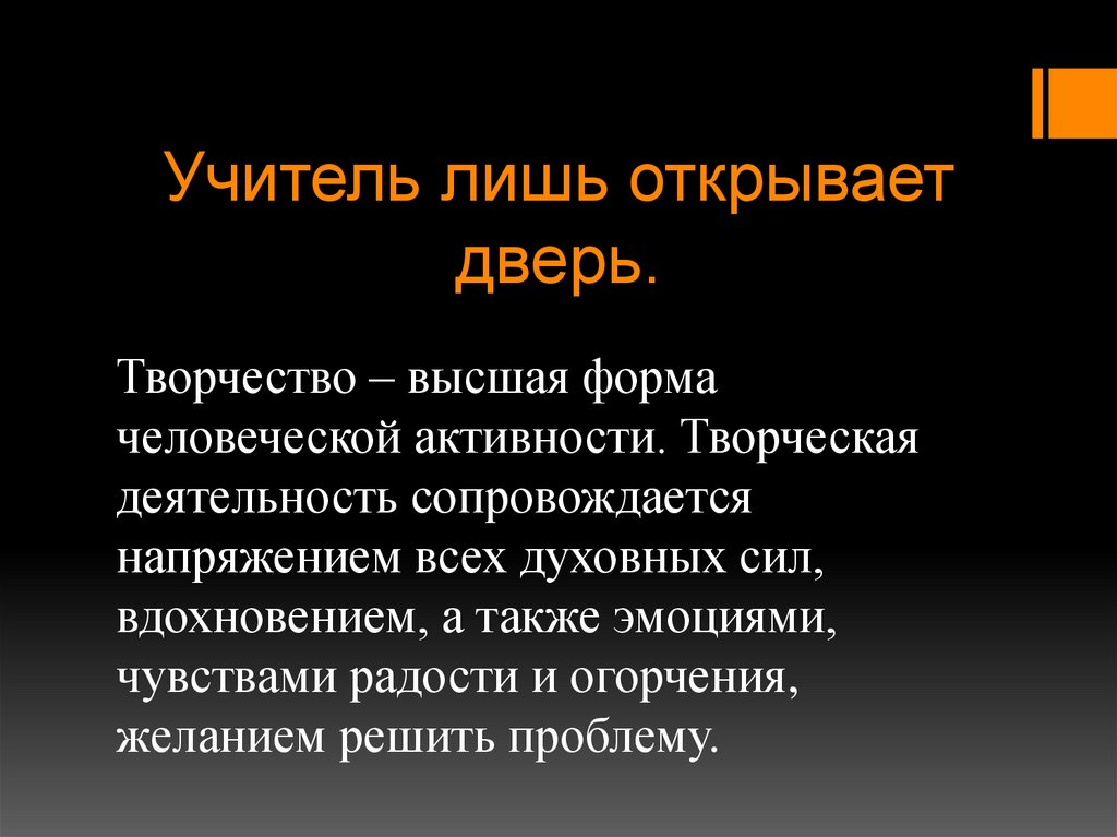Учитель лишь открываетдверь.