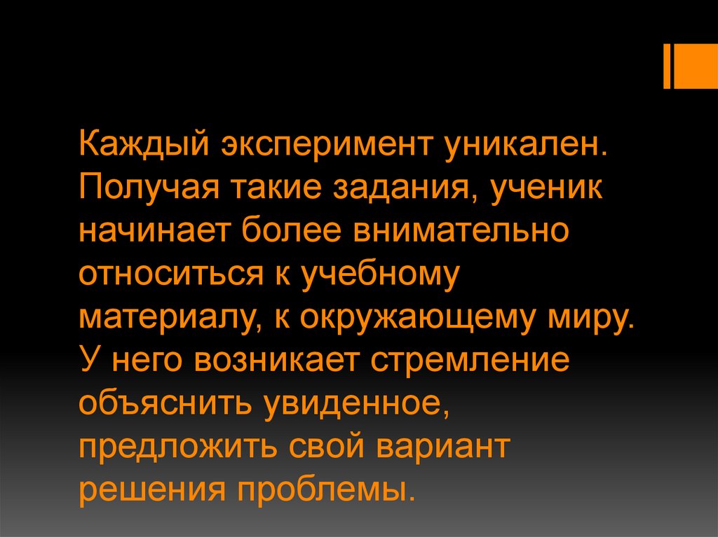Каждый эксперимент уникален.Получая такие задания, ученик