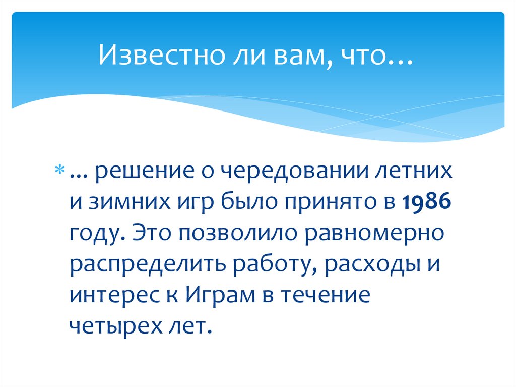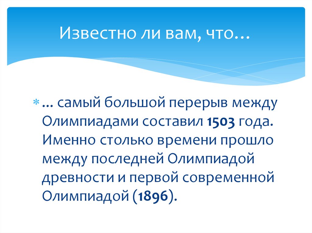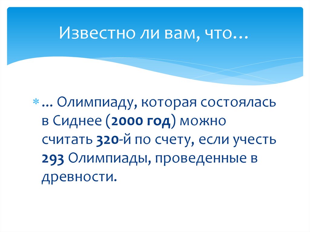 Известно ли вам, что…... Олимпиаду, которая состоялась