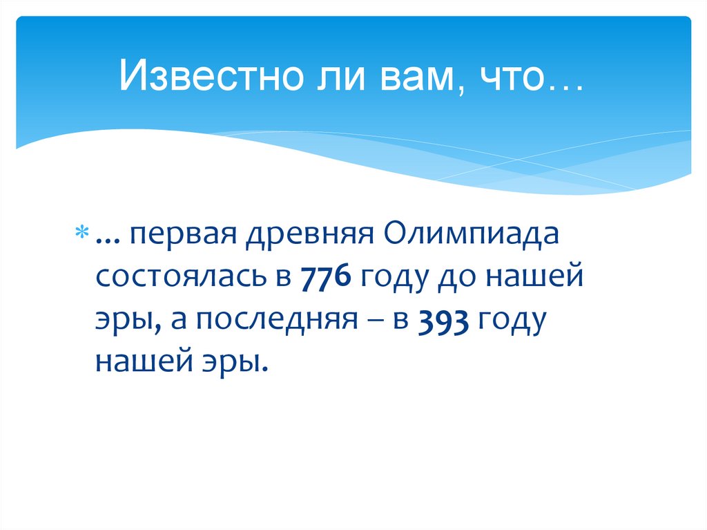 Известно ли вам, что…... первая древняя Олимпиада