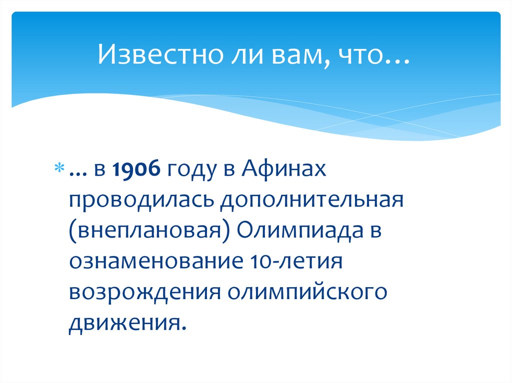 Известно ли вам, что…... в 1906 году в Афинах